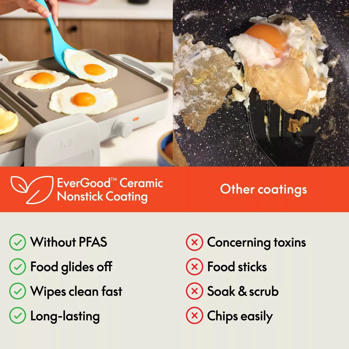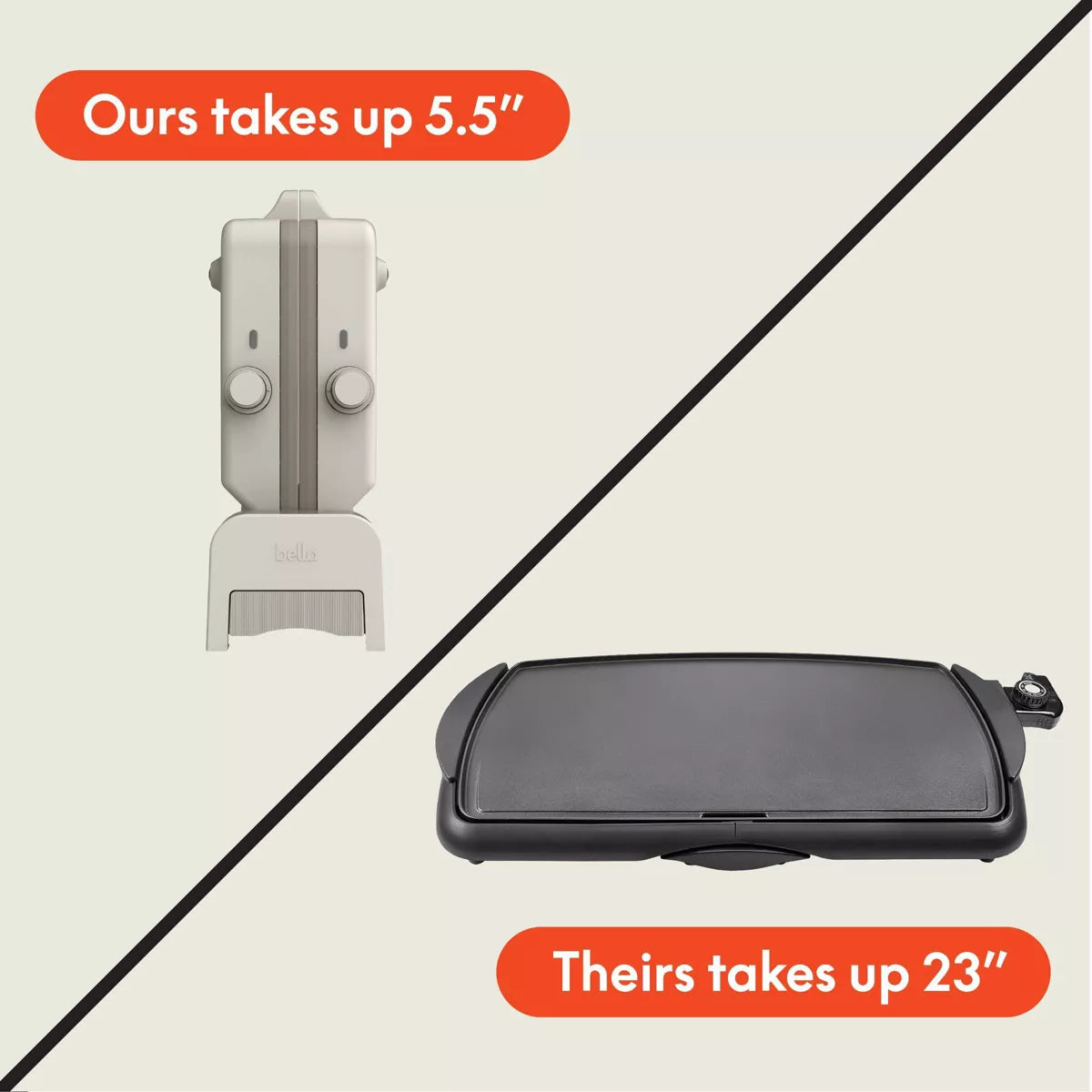 Bella Fold and Store Dual Temp Griddle Oatmilk: 1200W Electric Hot Plate, Aluminum Cooking Surface, 2-Year Warranty