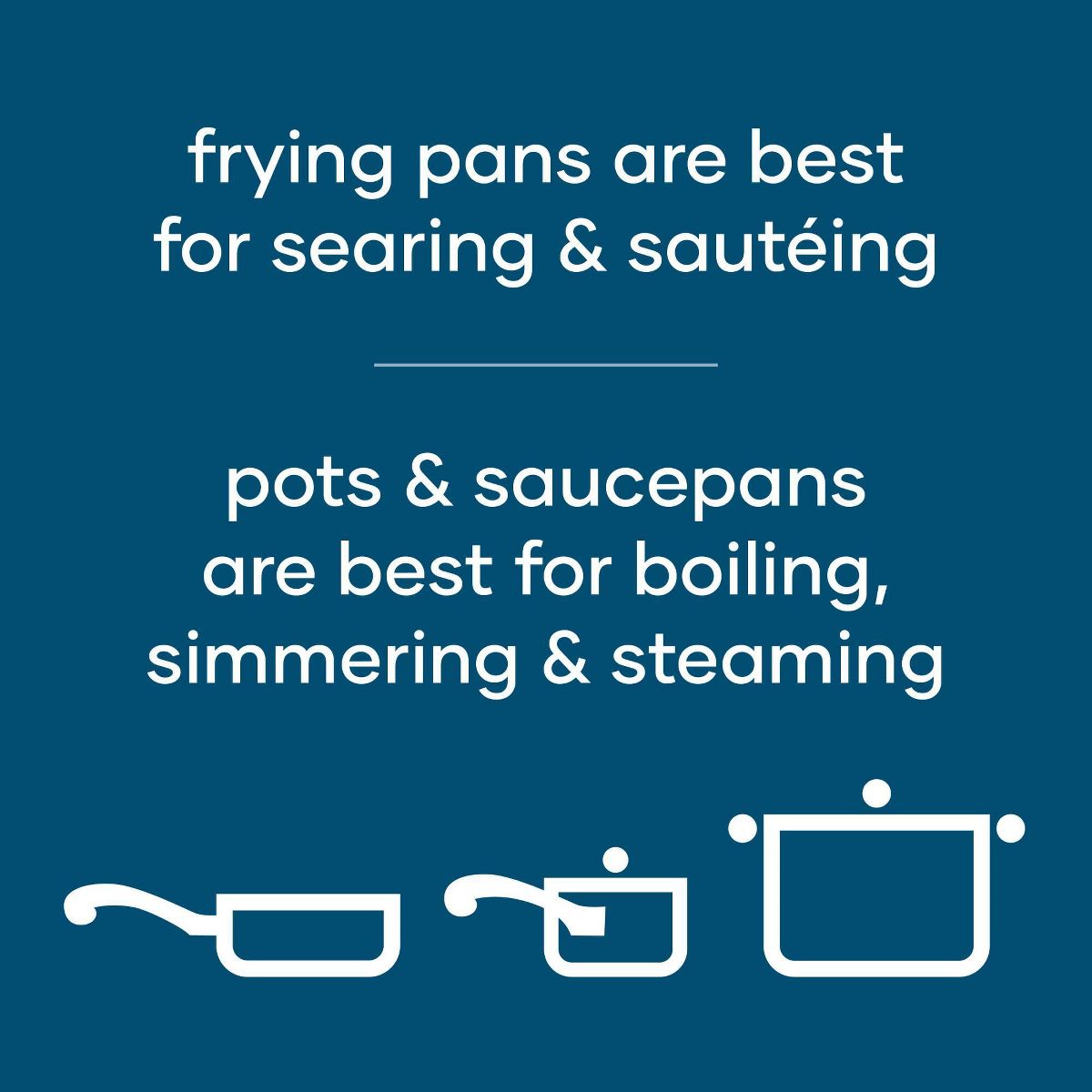 Edge-to-edge stainless steel bases for better, more even heat distribution, with a fully encapsulated design that protects against corrosion, making the cookware truly dishwasher safe