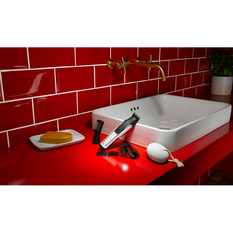 REMINGTON WETech Body Grooming Kit makes it easy to trim and shape facial hair, body hair, and everything in between. This cordless body trimmer has an ergonomic vertical design that fits comfortably in your hand for quick grooming on chest, back, legs, beard, and neckline. The kit includes multiple adjustable combs so you can customize your trim length for beard, mustache, or body hair. Thanks to WETech technology, this waterproof groomer works great wet or dry—perfect for use in the shower or with shaving gel. With 10% wider blades and dual-sided trimming, you get smooth, even results fast. The rechargeable battery gives you up to 70 minutes of cordless runtime, and the washable attachments make cleanup simple. Whether you’re looking for a reliable body trimmer, face and body groomer, or waterproof electric shaver, the REMINGTON WETech Body Grooming Kit covers all your grooming needs.