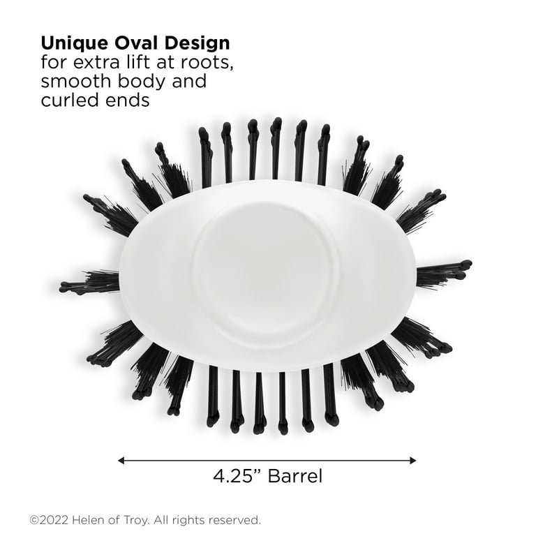 IONIC plus CERAMIC TECHNOLOGY: Unique Non-Detachable Oval Brush Design for Smoothing the Hair, while the round edges create volume. Designed with Nylon Pin & Tufted Bristles for detangling, improved volume, and control