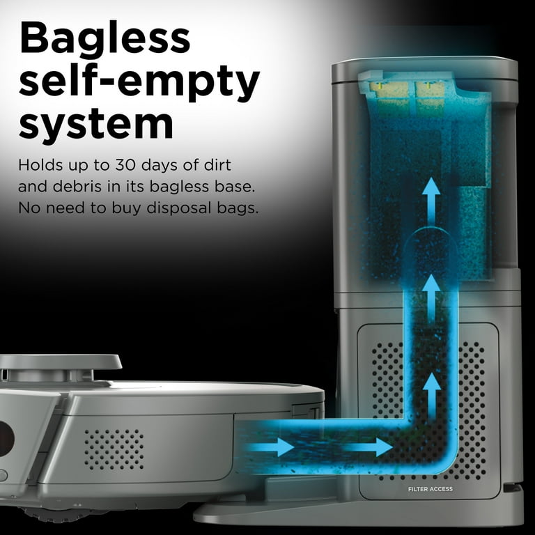 EMPTIES ITSELF: Self-empties after each clean into a bagless base that holds up to 30 days of dirt and debris. The bagless base does not require any additional purchase of disposal bags like traditional auto empty robots.